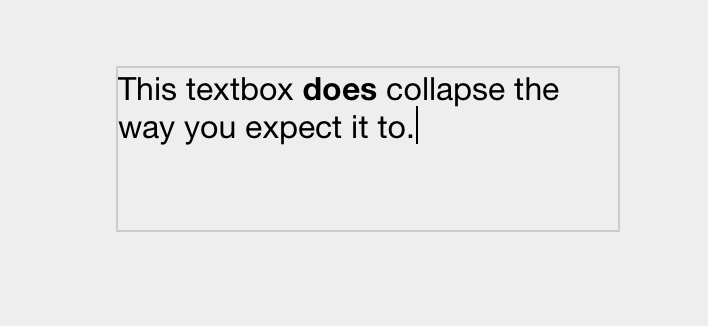 I volition say, the motorcar method is kind of nice for keeping your textboxes as small as they need to be, and allowing you to scale type upwards. When you outset create a textbox, yous mostly want to become the font size correct first, so this is platonic and requires fewer clicks.